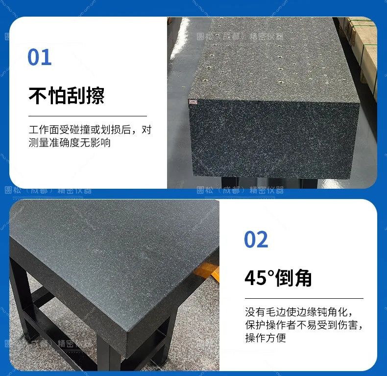 岩石平板主要缺点是,不能承受过大的撞击、敲打,湿度高会变形,吸湿性为1%。 大理石平台工作面的要求: