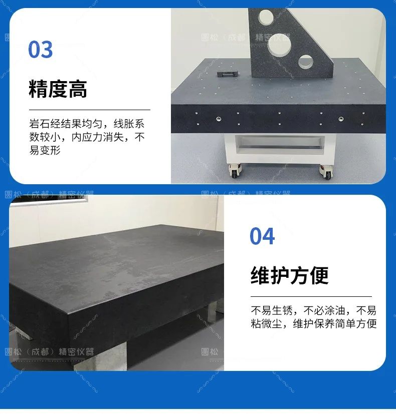 大理石平台的特点主要是精度稳定、维护方便。这是因为: