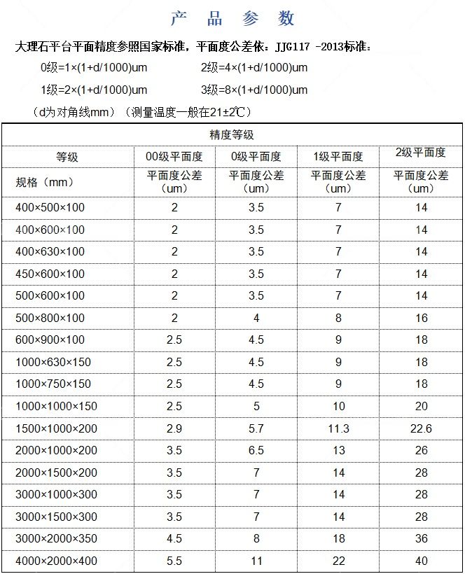 花岗石平板精度参照优良国家标准,平面度公差依:JJG117 -2013标准: